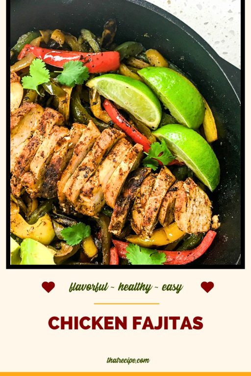 Flavorful Chicken Fajitas are so easy to make at home. This colorful and healthy dish can be ready in about 30 minutes if you marinate the chicken ahead of time.