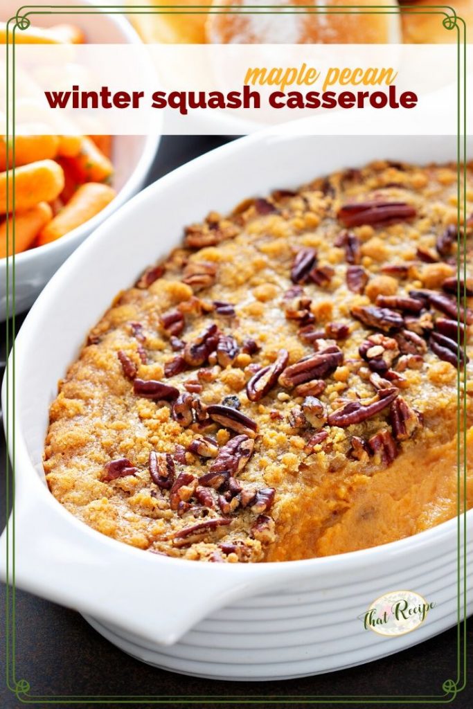 Easy Maple Pecan Winter Squash Casserole topped with brown sugar and pecans makes a lovely side dish for the holidays.