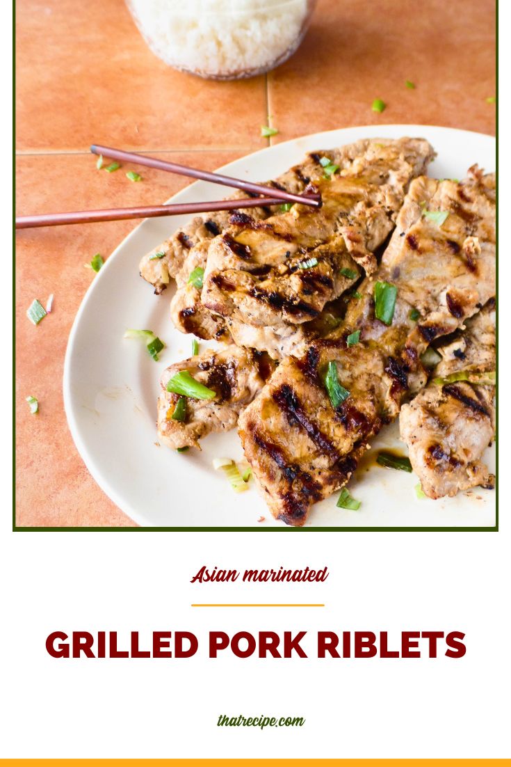 These grilled pork riblets are marinated in a flavorful spicy sweet and salty marinade then grilled up quickly for a delicious meal in about 30 minutes.