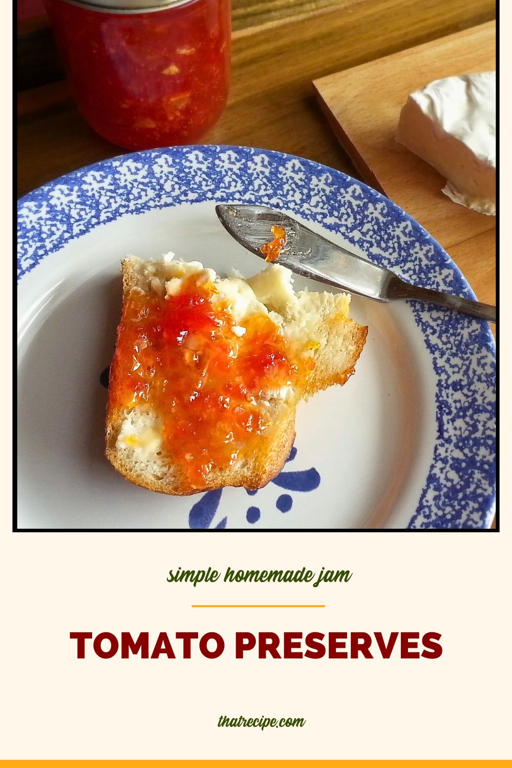 Cool. I've never heard of tomato preserves but this sounds very good and I love the idea of having it with sourdough and brie. I'm pinning.