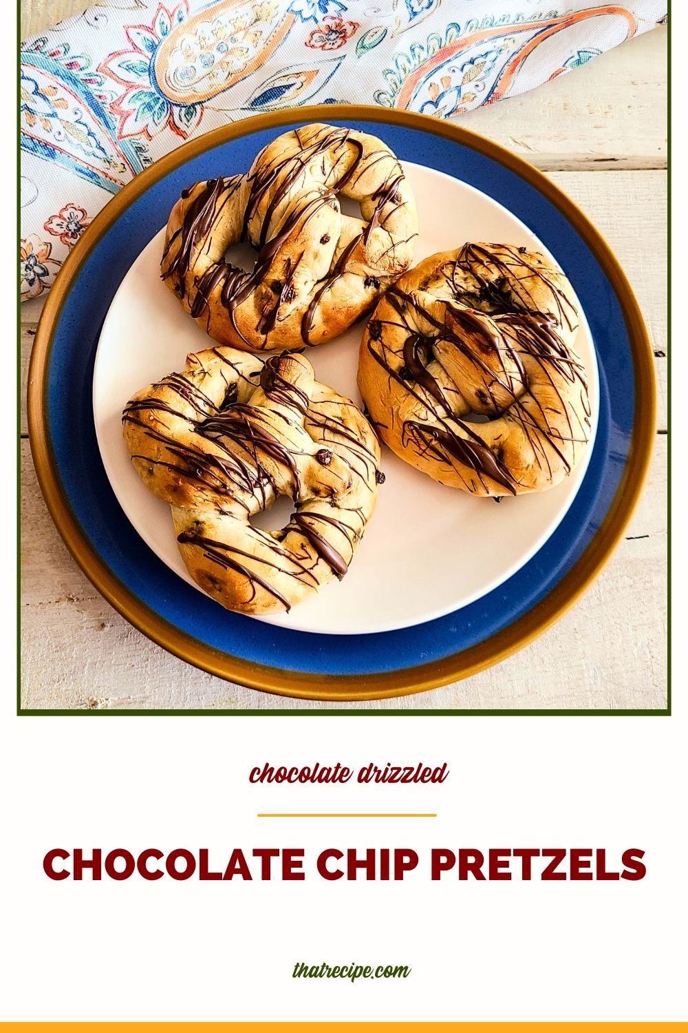 Chocolate Chip Soft Pretzels can be made in about an hour for a lightly sweet chocolatey treat.