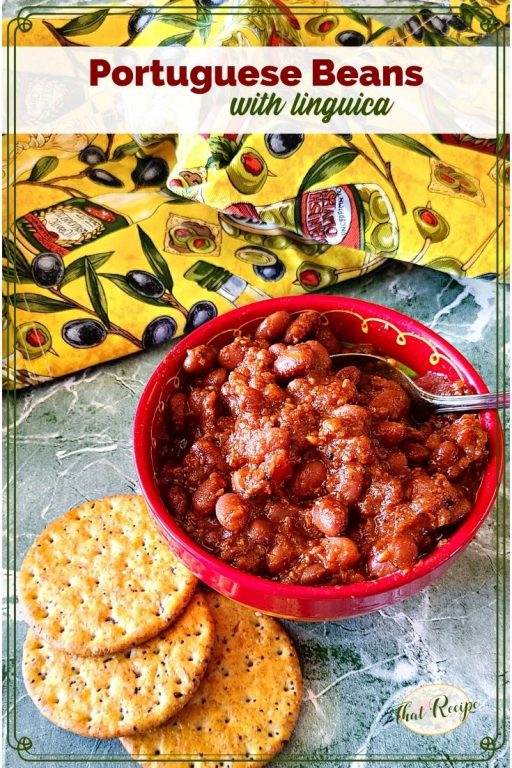 Portuguese Beans with Linguica are a spicy kin to American Pork and Beans and delicious as a main dish in chilly weather or a side dish for your summer cookouts.