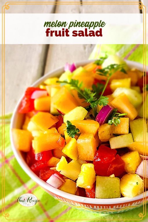 Melon Pineapple Fruit Salad is a colorful fruit salad bursting with a variety of tastes and textures making it a delicious accent to any meal.
