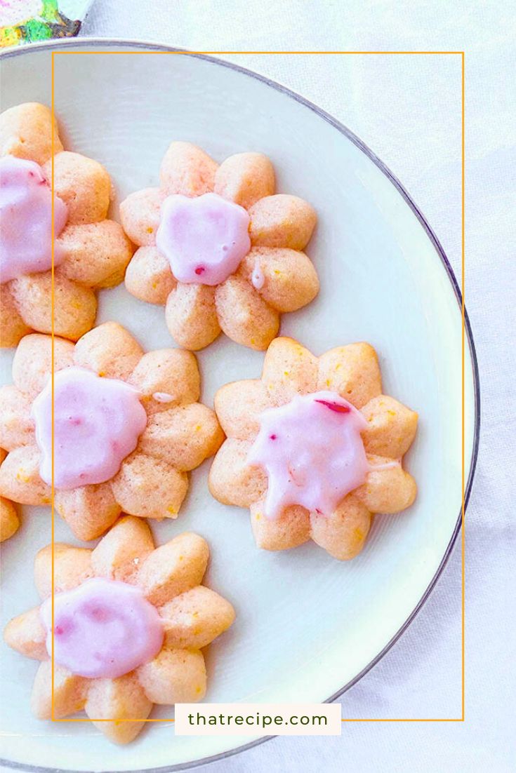 Use your favorite cookie press shape to make these. I went with the springtime flower.