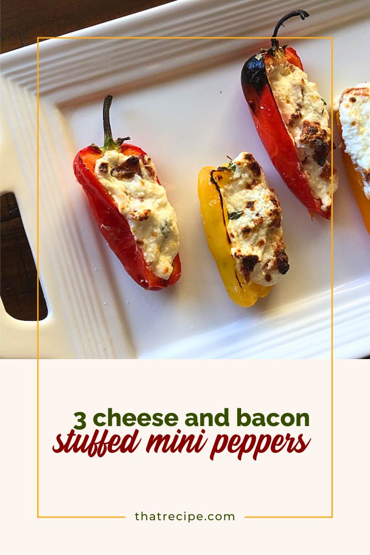 Need a last minute appetizer? These Cheese and Bacon Stuffed Mini Peppers come together in under 15 minutes, and the bright colors and bold flavors are sure to impress your guests.