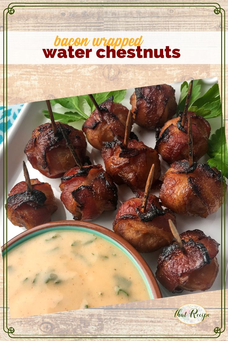 Bacon Wrapped Water Chestnuts are a delicious hot appetizer with crispy bacon wrapped around marinated water chestnuts and served with a lovely Spicy Mustard Dip.