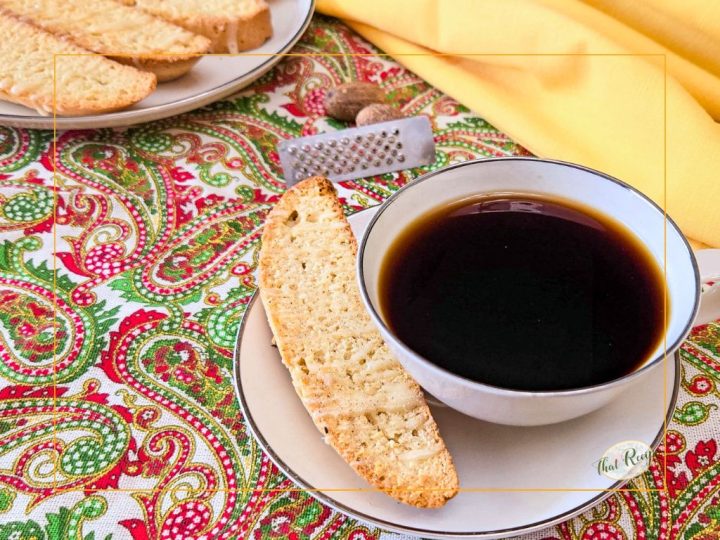 I usually grab my first container of eggnog before Thanksgiving and enjoy a morning eggnog latte until the new year. Sometimes I will enjoy it at night with a little rum mixed in. And at other times I will bake with it, like these biscotti or some eggnog scones.