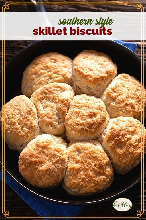 Southern Style Biscuits are light and fluffy buttermilk biscuits cooked in a cast iron skillet for extra height with bacon grease or butter baked right on top.