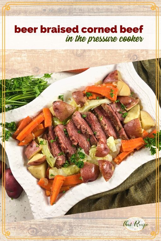 Corned beef brisket is made extra tender and flavorful with some beer and this delicious and easy pressure cooker method.