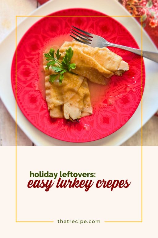 - Place crepes on a plate, add some turkey and gravy to the middle and roll up. Continue until all crepes are filled. Serve with any leftover gravy poured on top.