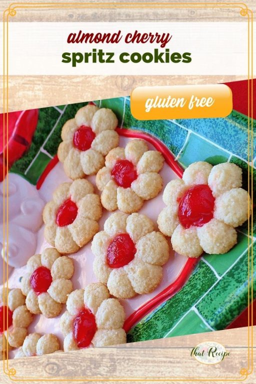These Almond Cherry Spritz Cookies are loaded with almond flavor thanks to the almond flour and dash of almond extract.