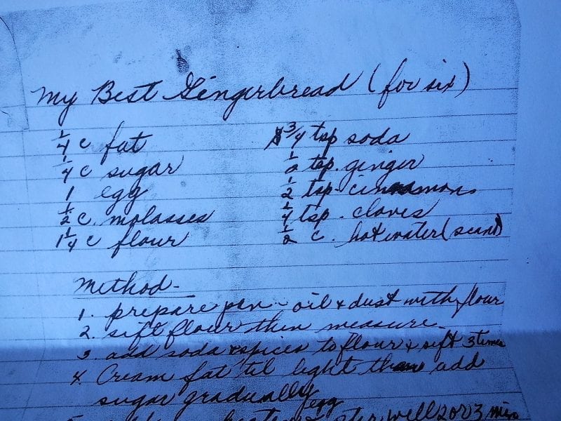 My Goddaddy recently sent me an envelope stuffed full of treasures. Old letters written by family members and one handwritten recipe for "My Best Gingerbread".